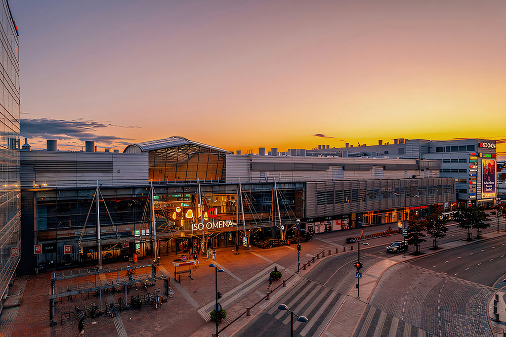 Iso Omena shopping center offers numerous opportunities for shopping. You’ll find up to 200 shops, services, cafés, and restaurants. At Iso Omena, you can also enjoy movies and for the kids, Duudsonit Activity Park is the place to be!