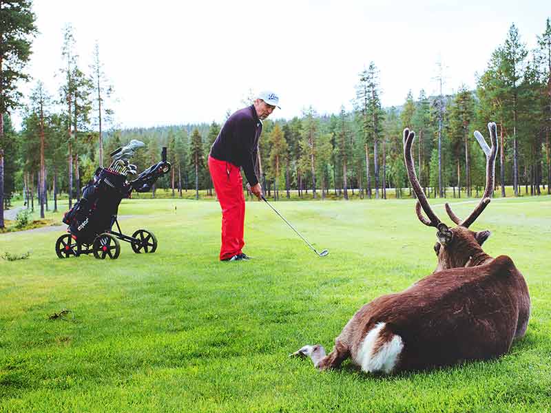 Our Levi golf packages include green fees for the Levi Golf course. The 18-hole course is beautifully located at the foot of the northeastern slopes of Levi Fell. With enough daylight, the course is open around the clock! In addition to the stunning lake scenery, the bright summer nights, autumn colors, and Lapland’s nature make for an unforgettable experience.