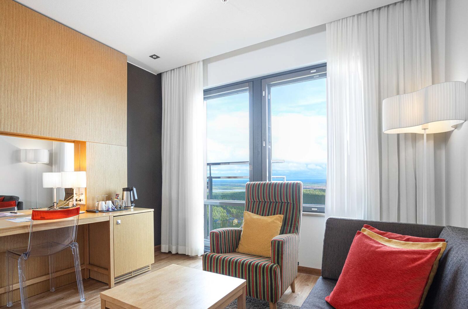 For a luxurious stay, look no further than Hotel Levi Panorama, perched high on the Levitunturi. The hotel offers stunning views over the Levi Village and the breathtaking landscape that stretches far beyond. Our golf package includes top-notch accommodation, a generous buffet breakfast, parking, and your green fee to Levi Golf, located just a 10-minute drive away.