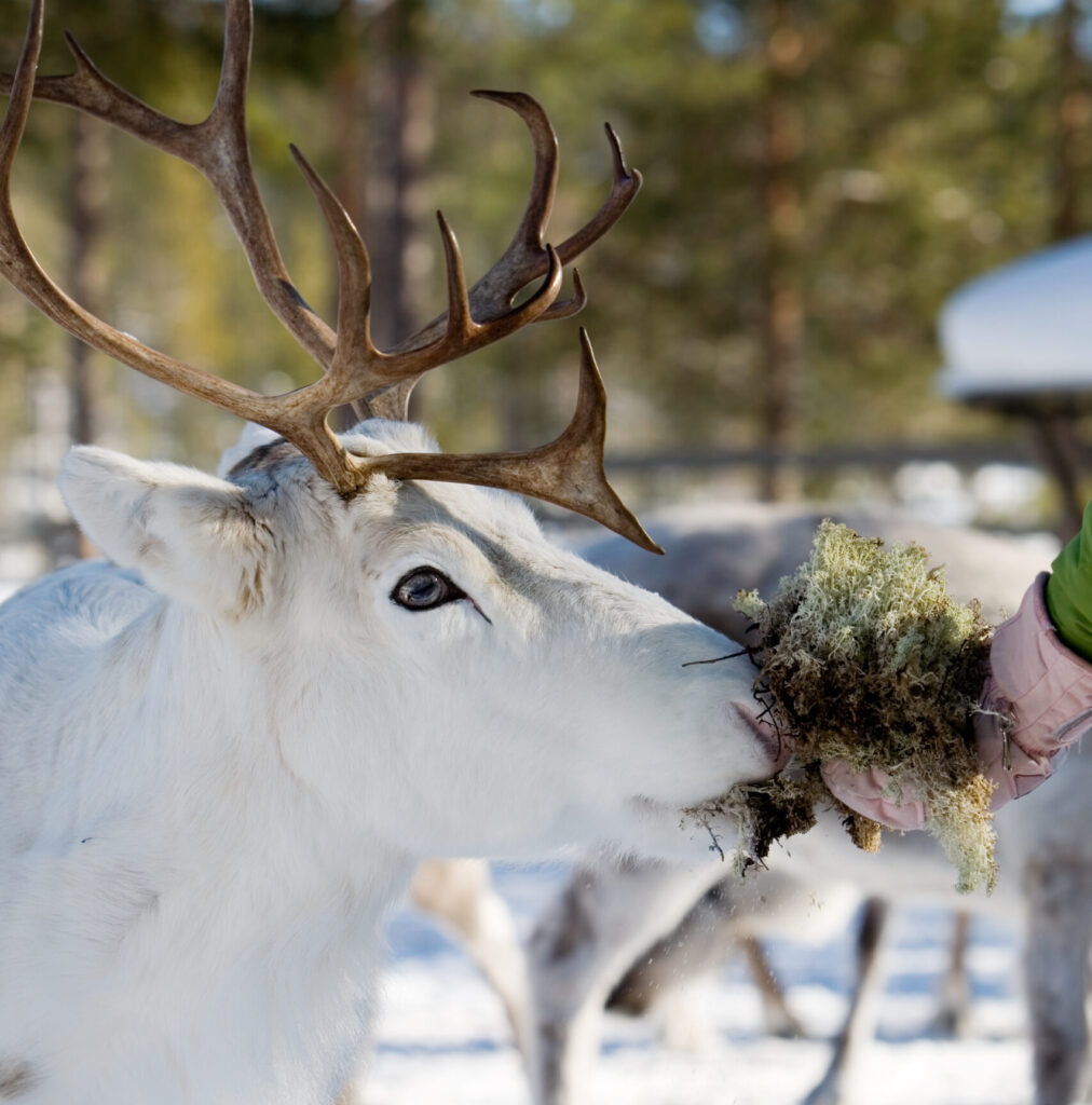 At the hotel reception, you can purchase lichen, a favorite food of the reindeer. Feeding them is a wonderful way to get closer and enjoy their presence!