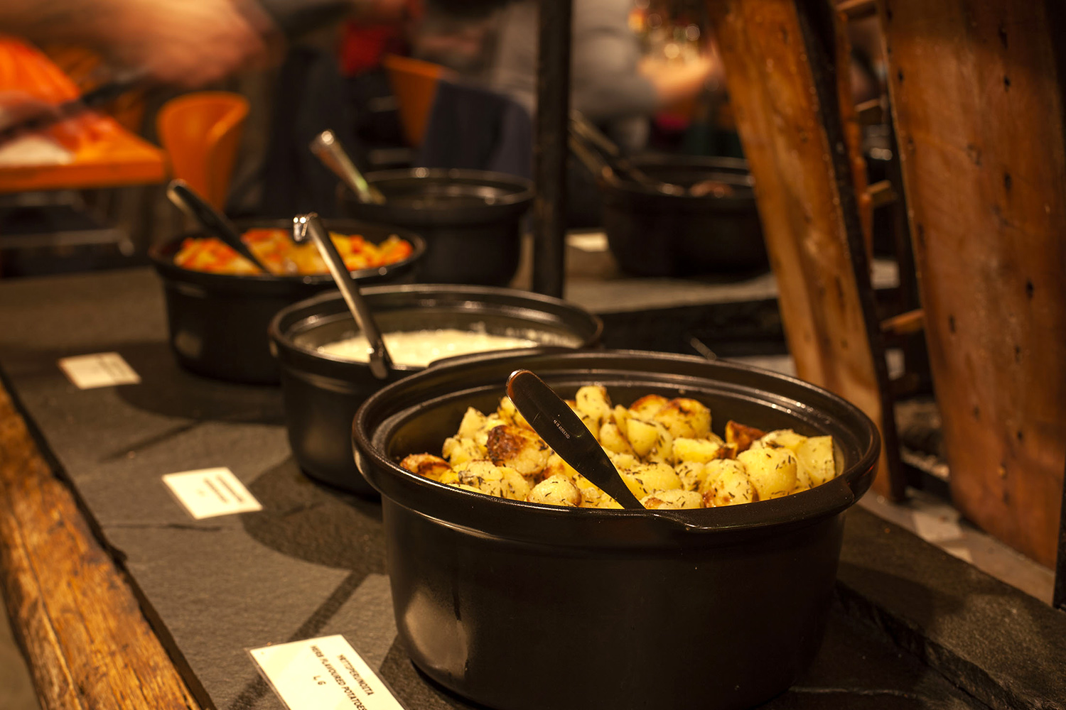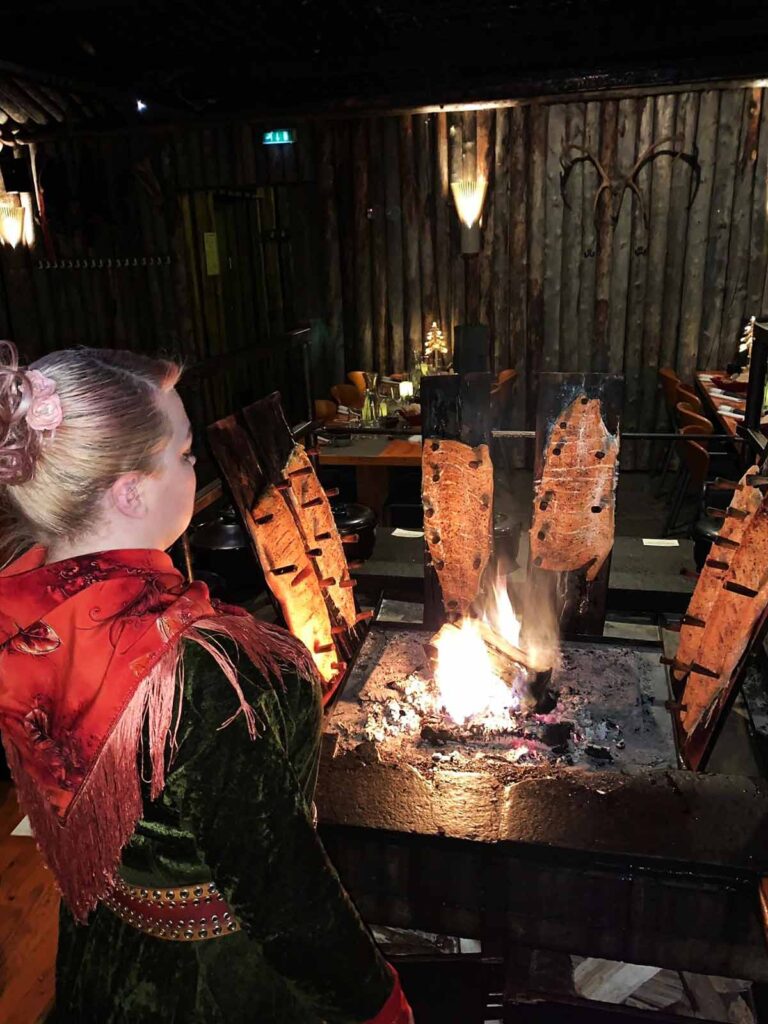 Ravintola Saamen Kammin buffetkattaus tulen äärellä.