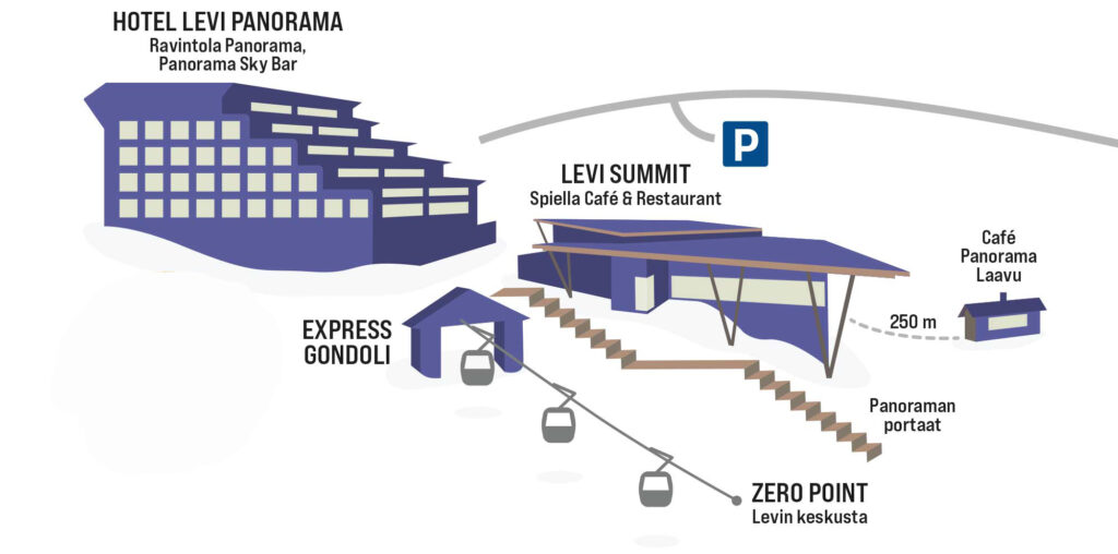 Meille on helppo tulla! Voit saapua Levi Express -gondolihissillä, autolla, pyörällä tai Panoraman portaita pitkin.