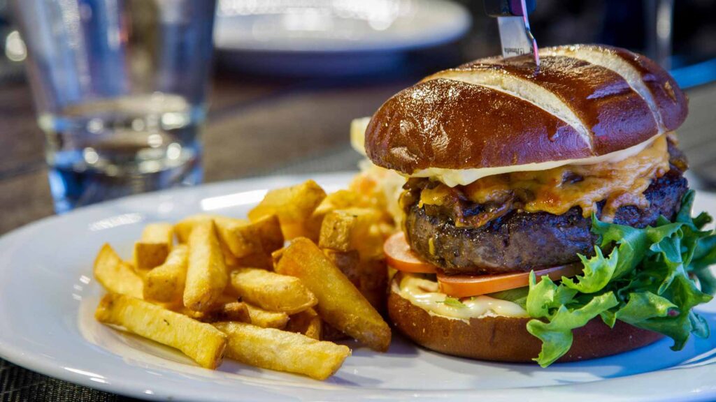 130 g naudanleike, majoneesia, ranskalaisia ja vihersalaattia