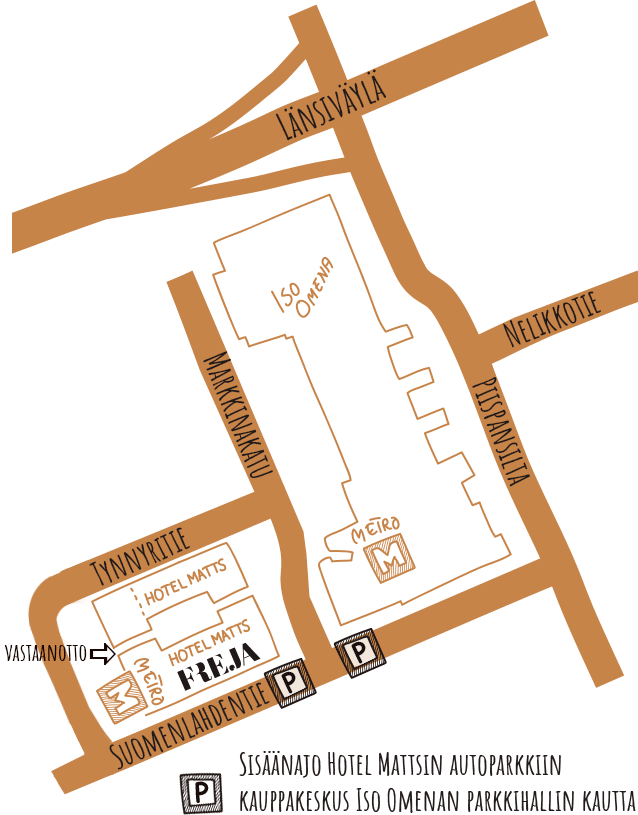 Saavut meille metrolla, bussilla tai omalla autolla